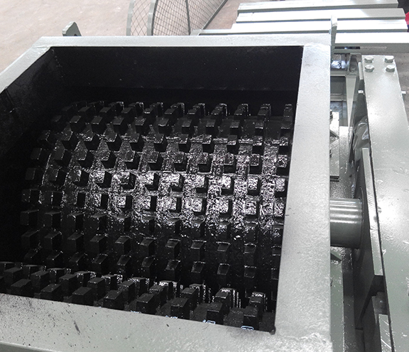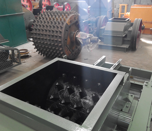 Los dos conjuntos de ejes de rodillos accionados individualmente se utilizan para triturar el material mediante la fuerza de aplastamiento y la fuerza de cizallamiento generada por la rotación relativa. Una vez que el material entra en la cámara de trituración, se somete a la fuerza del eje de rodillos giratorio y se le obliga a pasar entre los dos rodillos. Al mismo tiempo, el material comienza a romperse por el aplastamiento y el cizallamiento del eje de los rodillos. Las pequeñas partículas rotas se desplazan a lo largo de la tangente del rodillo de rotación y son arrojadas debajo de la máquina a través del espacio entre los dos rodillos.