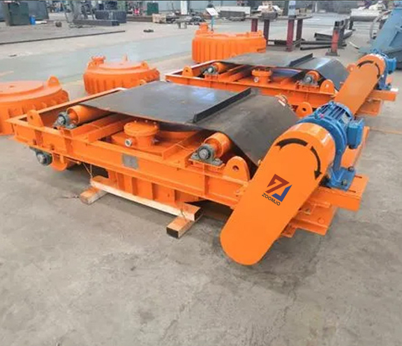 Cuando el material granular pasa directamente por debajo del removedor de hierro de imán permanente autodescargable , se aspirarán unos 0,1-0,36 kg de impurezas ferromagnéticas mezcladas en el material. Cuando el material magnético pasa por la zona no magnética, será raspado por las piezas de hierro de la cinta y arrojado a la caja de recogida de hierro, para lograr el propósito de la eliminación automática continua de hierro.
