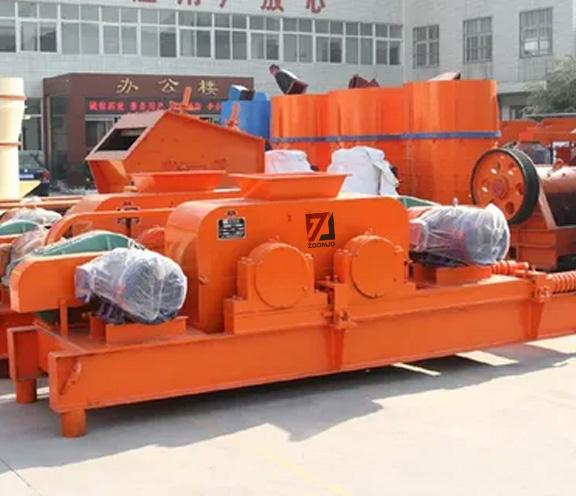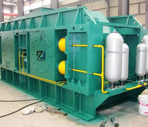Trituradora de doble rodillos consiste en una rueda de rodillo, un cojinete de rodillo, un dispositivo de prensado, un dispositivo de ajuste y un dispositivo de conducción, etc. Ajuste del tamaño de descarga: entre dos rodillos equipados con un dispositivo de ajuste cuneado o de junta, la parte superior del dispositivo de cuña está cubierta con pernos de ajuste. Cuando los pernos de ajuste tiran de la cuña hacia arriba, que llevará contra la rueda fija para hacer que se desvíe de la rueda del rodillo móvil, entonces la brecha entre las ruedas se convierten en grandes, el tamaño de descarga se hacen más grandes, de lo contrario, el dispositivo de junta es a través de la cantidad o el espesor para ajustar el tamaño de los materiales. Cuando se añaden juntas, el espacio entre las ruedas se hace grande, cuando se reducen las juntas, el espacio entre las ruedas se hace pequeño, por lo que el tamaño de descarga se hace pequeño. La estructura de accionamiento es de dos motores a través de la transmisión de la correa triangular a la polea acanalada que arrastra el rodillo que gira según la dirección relativa. En la etapa de trituración, el material se rompe por la rueda de rodillos; el producto final se descarga desde el chasis.